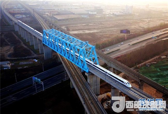 12月19日,一列高鐵從轉(zhuǎn)體成功后的商合杭高鐵跨鄭徐高鐵T構(gòu)梁下駛過。商合杭高鐵線路全長794.55公里,設(shè)計時速350公里。