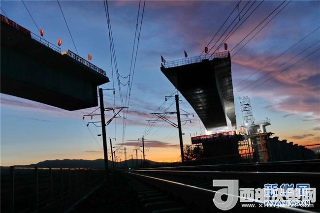 河北省懷來縣境內(nèi)的新建京張高鐵跨大秦鐵路線土木特大橋連續(xù)梁在轉(zhuǎn)體中(9月17日攝)。