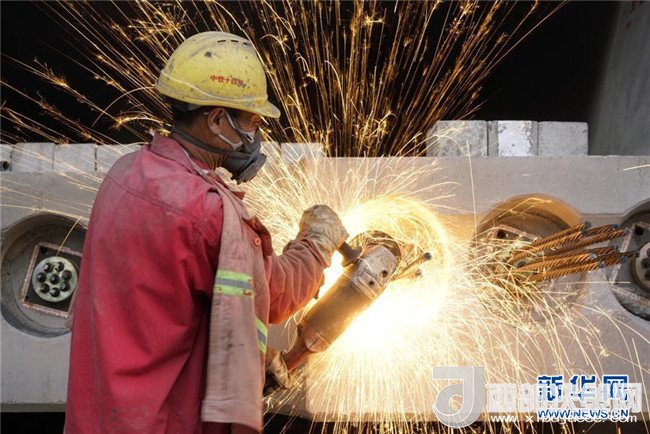工人在中鐵上海工程局銀西高鐵甘寧段制梁場制作高鐵預(yù)制梁(4月17日攝)。銀西高鐵跨陜西、甘肅、寧夏三省(區(qū)),速度目標(biāo)為250公里每小時,計劃2020年建成通車,屆時從西安到銀川將由現(xiàn)在的14個小時縮短至3小時左右。