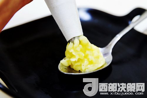 食材:土豆、濃縮雞汁、黃油、藍莓醬、黑胡椒。