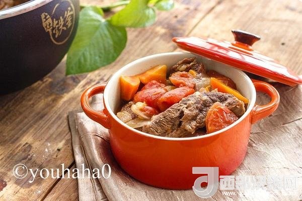 西紅柿和牛腩怎樣烹飪才好吃呢?首先想到的是西紅柿燉牛腩,這款家喻戶曉的大眾家常菜,幾乎人人都會做,人人都喜歡吃;做過高壓鍋版的、鐵鍋版的,這次用鐵釜做的西紅柿燉牛腩沒加一滴水,完全用西紅柿與牛腩燉煮,湯汁濃厚,牛肉味道濃郁,有鐵釜一切皆簡單;不過偷偷的說一下,加了紅酒味道更棒。