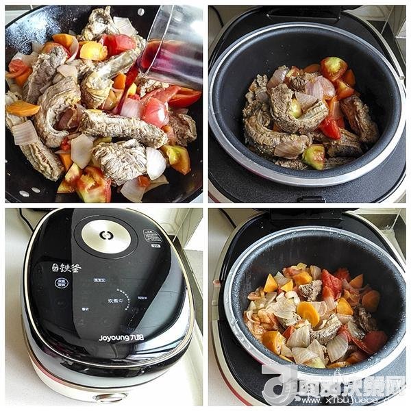 食材:牛腩500克,西紅柿800克,洋蔥一個(gè),胡蘿卜一個(gè),紅酒100克,鹽8克,植物油2湯匙。