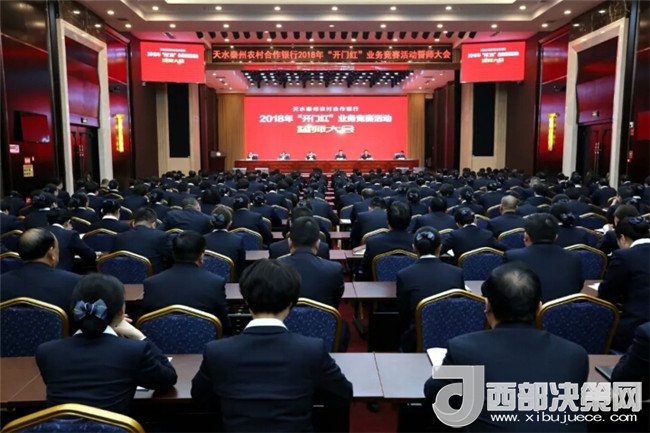 西部決策網(wǎng)-西部大開(kāi)發(fā)訊(帥華鋒 通訊員 馬存福 漆曉明)1月2日上午8時(shí),天水賓館會(huì)議中心燈火通明、濟(jì)濟(jì)一堂,醒目的橫幅,激昂的誓言,吹響了天水秦州農(nóng)村合作銀行2018年“開(kāi)門(mén)紅”業(yè)務(wù)競(jìng)賽活動(dòng)戰(zhàn)斗的號(hào)角,擂響了全員沖鋒的戰(zhàn)鼓,拉開(kāi)了決戰(zhàn)“開(kāi)門(mén)紅”的大幕。