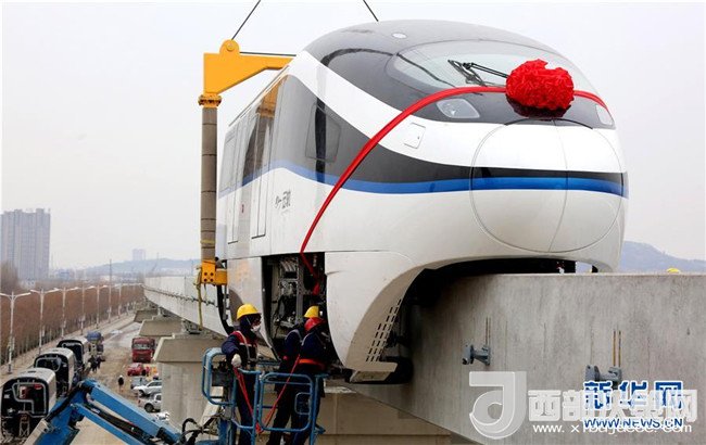 1月3日,在山東省鄒城市,工作人員進行旅游云軌“孔孟旅游快線”機車上梁作業(yè)。當日,孔子故里曲阜、孟子故里鄒城之間的云軌“孔孟旅游快線”完成機車上梁作業(yè)。這條旅游快線串聯(lián)起“三孔”景區(qū)、高鐵曲阜東站和曲阜南站、九龍山景區(qū)、孟廟孟府景區(qū)等。云軌是中國首條自主知識產權的跨座式單軌列車,類似于“空中小火車”,最高時速可達80公里。(呂衛(wèi)鋒 攝)