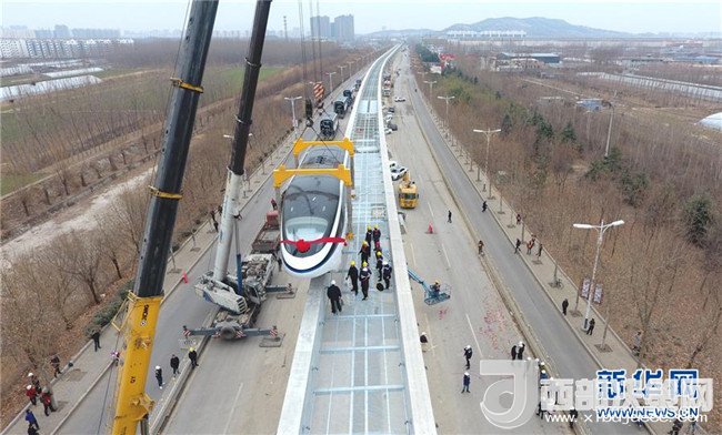 1月3日,在山東省鄒城市,工作人員進行旅游云軌“孔孟旅游快線”機車上梁作業(yè)。當日,孔子故里曲阜、孟子故里鄒城之間的云軌“孔孟旅游快線”完成機車上梁作業(yè)。這條旅游快線串聯(lián)起“三孔”景區(qū)、高鐵曲阜東站和曲阜南站、九龍山景區(qū)、孟廟孟府景區(qū)等。云軌是中國首條自主知識產權的跨座式單軌列車,類似于“空中小火車”,最高時速可達80公里。(田楊 攝)