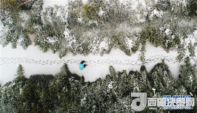 1月4日,合肥市翡翠湖公園內(nèi),兩名游客行走在雪中。當(dāng)日,安徽省合肥市迎來(lái)2018年首場(chǎng)降雪。(記者 郭晨 攝)