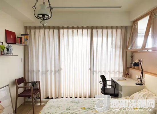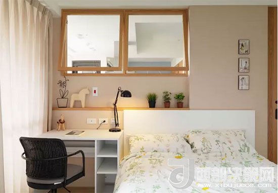 寫字臺緊靠床邊,發(fā)揮了床頭柜的功能,臺燈也可以當(dāng)做床頭燈,減少不必要的裝飾。房主人利用凹進(jìn)去的墻面正好做了一個(gè)擱物臺,放上幾盆綠植,伴著自己入眠。