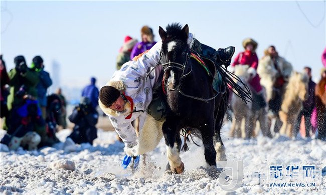 1月16日,在內(nèi)蒙古錫林浩特鳳凰馬場,當(dāng)?shù)啬撩駛冑愸橊劇?br />