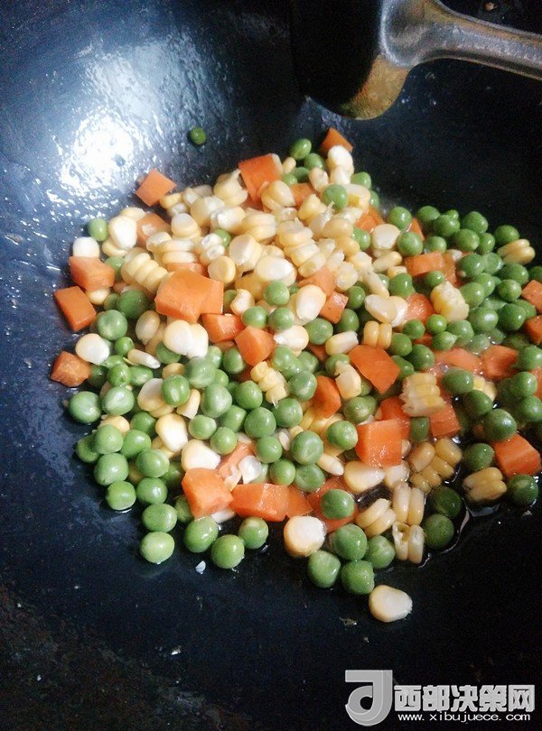 主料:胡蘿卜 1根 玉米 1根 豌豆 300克 里脊肉 100克