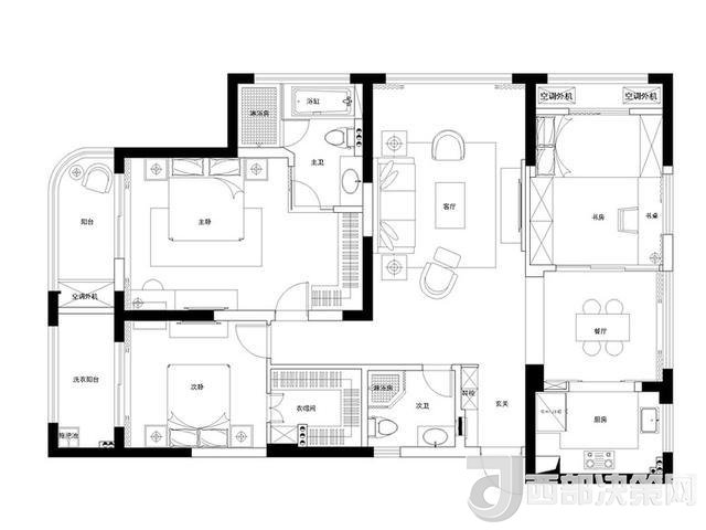 主臥非常的大,就是客廳小了點(diǎn)。面積空間沒(méi)有充分的利用起來(lái),做了3個(gè)房間加1個(gè)衣帽間,房間夠住了。房子的戶型很房子,除了衣帽間沒(méi)有采光,其它地方都是有帶窗戶采光的。