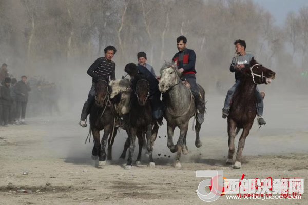 刀郎部落“與刀郎人共度春節(jié)”活動中的賽馬叼羊比賽。