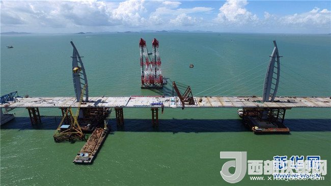 港珠澳大橋上的“中國結”造型橋塔(2017年7月5日攝)。記者 梁旭 攝