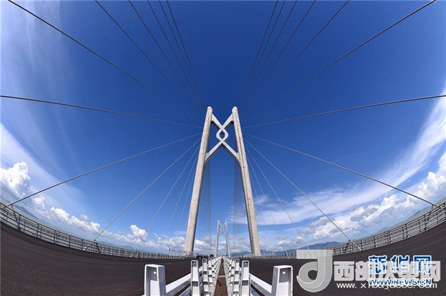 港珠澳大橋上的“中國結”造型橋塔(2017年6月6日攝)。記者 梁旭 攝