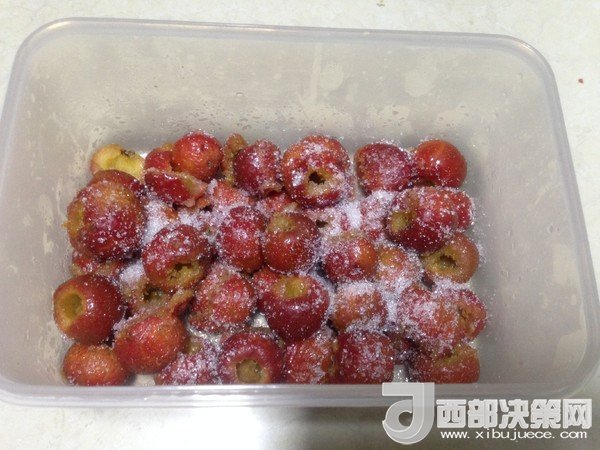9.一層白糖、一層山楂的,然后把白糖和山楂掂均勻(不要用勺子或筷子拌,以免山楂碎掉)