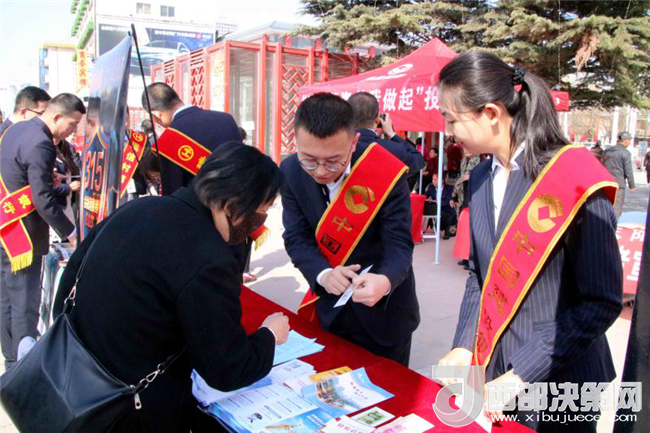 西部決策網(wǎng)——西部大開發(fā)訊(劉恒 齊彩云 通訊員 李海瑞 嵇祥)為進(jìn)一步提高金融消費(fèi)者的權(quán)責(zé)意識和風(fēng)險意識,幫助其自覺遠(yuǎn)離和抵制非法金融活動,引導(dǎo)金融消費(fèi)者理性維權(quán),構(gòu)建和諧、綠色的金融消費(fèi)環(huán)境,甘肅建行慶陽分行積極響應(yīng)人行號召,于3月15日在東湖公園及各營業(yè)網(wǎng)點開展了,以“權(quán)利·責(zé)任·風(fēng)險”為主題的消費(fèi)者權(quán)益保護(hù)宣傳活動。