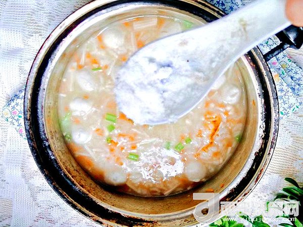 6.熬好后下入肉丸