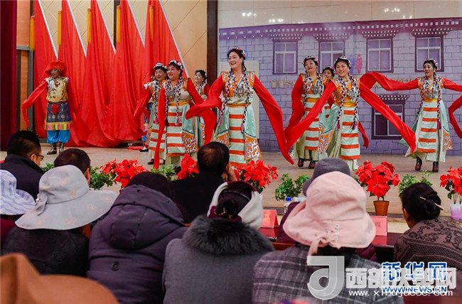 這是拉薩市城關(guān)區(qū)納金鄉(xiāng)塔瑪村慶祝百萬農(nóng)奴解放紀念日文藝表演現(xiàn)場(3月27日攝)。