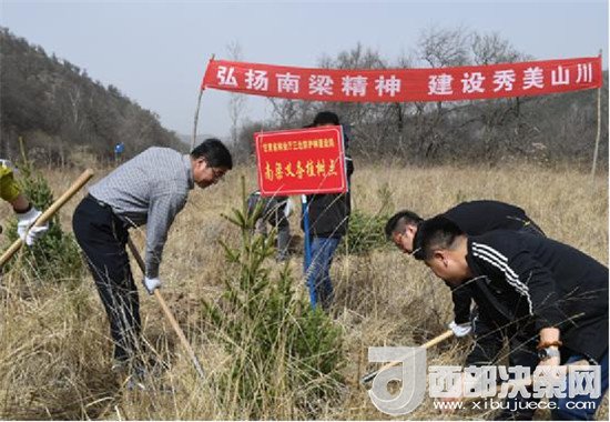 隨后,馬立鵬一行赴子午嶺生態(tài)林的密集區(qū)大鳳川林區(qū)開展“弘揚南梁精神,建設(shè)秀美山川”義務(wù)植樹活動,并確立了甘肅省林業(yè)廳三北防護林建設(shè)局的“南梁義務(wù)植樹點”。通過親身開坑植樹,馬立鵬真切地感受到,森林的的確確是陸地生態(tài)系統(tǒng)的主體,林業(yè)更是一項惠民生、利千秋、保長遠的重要公益事業(yè)和基礎(chǔ)產(chǎn)業(yè),承擔(dān)著生態(tài)建設(shè)和林產(chǎn)品供給的重要政治任務(wù),在穩(wěn)步助推全省脫貧攻堅行動的今天,努力做好林業(yè)生態(tài)建設(shè)工作意義重大、使命光榮、義不容辭。