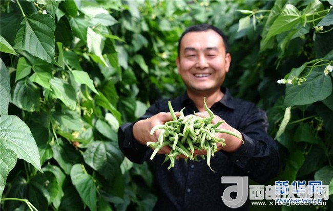 4月18日,甘肅省酒泉市肅州區(qū)總寨鎮(zhèn)總寨村村民范立德在日光溫室內(nèi)展示自己種植的無公害蔬菜。
