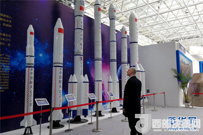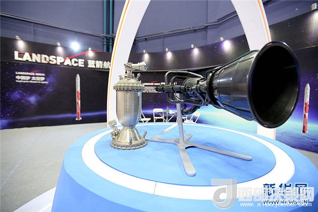 現(xiàn)場展示的藍(lán)箭航天商業(yè)運載火箭發(fā)動機(jī)等比例模型。新華網(wǎng)才萌攝