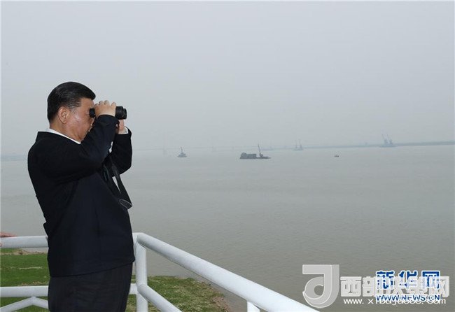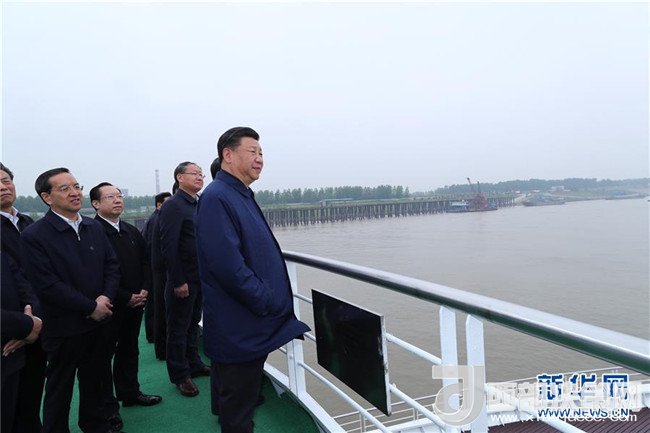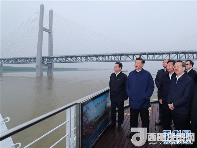 4月26日下午,中共中央總書記、國家主席、中央軍委主席習近平在武漢主持召開深入推動長江經濟帶發(fā)展座談會并發(fā)表重要講話。這是座談會前,習近平于25日上午乘船沿江察看兩岸生態(tài)環(huán)境和發(fā)展建設情況。新華社記者 謝環(huán)馳 攝