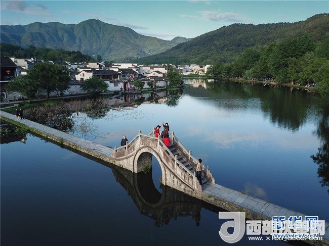 這是5月8日無人機拍攝的安徽黟縣宏村景區(qū)。新華社記者邢廣利 攝