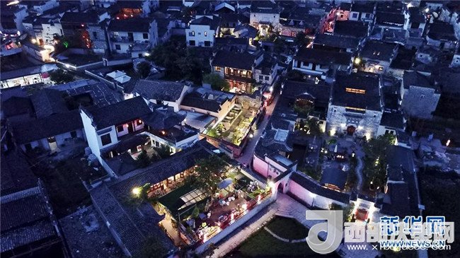 這是5月8日無人機拍攝的安徽黟縣宏村景區(qū)的夜景。新華社記者張端 攝