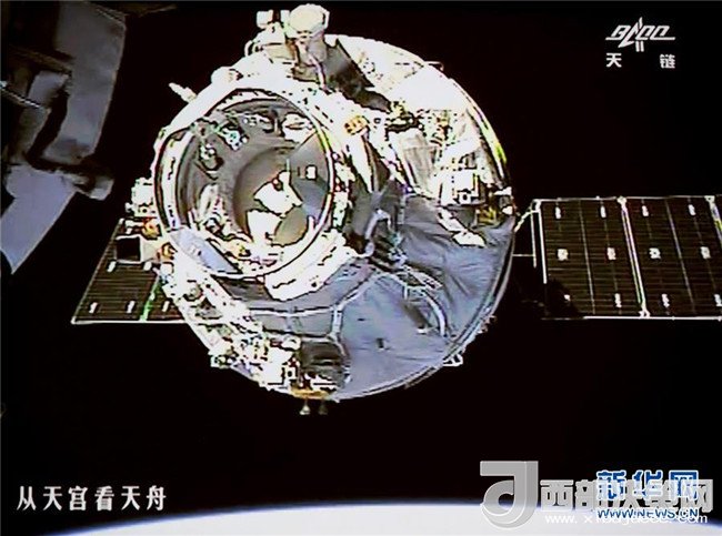 2017年4月22日12時(shí)23分,天舟一號(hào)與天宮二號(hào)順利完成自動(dòng)交會(huì)對(duì)接。這是天舟一號(hào)與天宮二號(hào)進(jìn)行的首次自動(dòng)交會(huì)對(duì)接,也是我國(guó)自主研制的貨運(yùn)飛船與空間實(shí)驗(yàn)室的首次交會(huì)對(duì)接。圖為北京航天飛行控制中心大廳大屏幕上顯示的天舟一號(hào)向天宮二號(hào)靠攏的畫(huà)面(2017年4月22日攝)。新華社發(fā)(王泗江 攝)