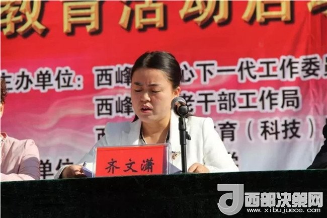 啟動儀式由西峰區(qū)人民政府副區(qū)長、關(guān)工委副主任齊文瀟主持,并作“傳承紅色基因,爭做時代新人”主題教育動員講話。她指出,開展“傳承紅色基因,爭做時代新人”主題教育活動,是為貫徹落實習(xí)近平新時代中國特色社會主義思想對關(guān)心下一代工作提出的新要求作出的重大部署和安排,主要目的在于引導(dǎo)廣大青少年認(rèn)清自己的“根”和“魂”,教育引導(dǎo)廣大青少年從紅色基因中汲取道德滋養(yǎng)和文化精髓,自覺踐行社會主義核心價值觀,堅定理想信念,為實現(xiàn)偉大復(fù)興的中國夢做出應(yīng)有的貢獻(xiàn)。