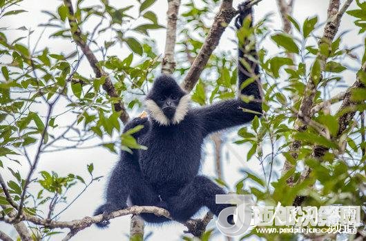 圖為普洱太陽(yáng)河生態(tài)環(huán)境建設(shè)示范點(diǎn)內(nèi)的白頰長(zhǎng)臂猿。(供圖)