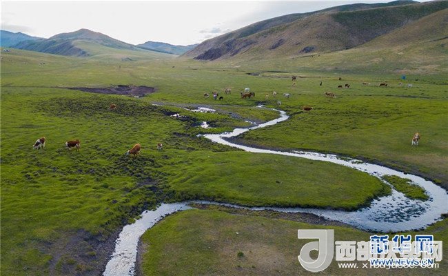 6月6日無人機(jī)拍攝的進(jìn)入全面返青期的內(nèi)蒙古赤峰市阿魯科爾沁草原。新華社記者 彭源 攝