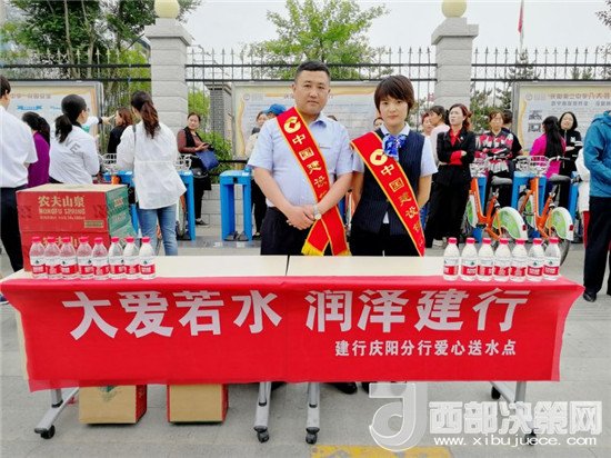 西部決策網(wǎng)——西部大開發(fā)訊(帥華鋒 通訊員 齊彩云 嵇祥)6月7日,建行慶陽分行組織員工,在這個(gè)特別的日子開展了“大愛若水,潤澤建行”助力高考學(xué)子活動(dòng),在高考期間,考生及家長可在我行設(shè)立的補(bǔ)水站處憑準(zhǔn)考證領(lǐng)取1瓶礦泉水,為寒窗苦讀的學(xué)子與焦急等待的家長送去了關(guān)懷。