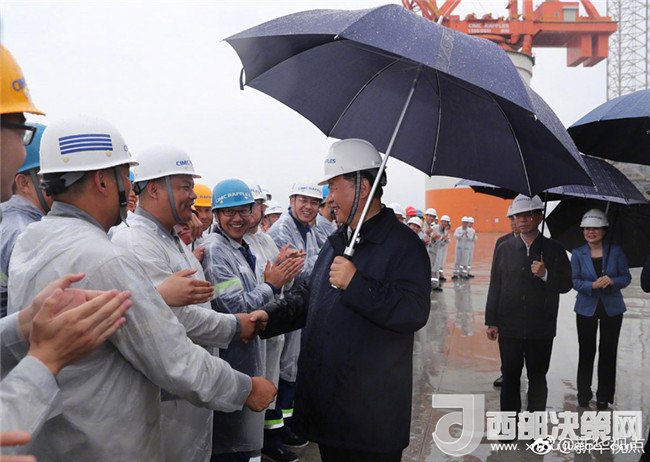 6月13日下午,習近平冒雨來到中集來福士海洋工程有限公司煙臺基地。“藍鯨1號”鉆井平臺巍峨佇立、“泰山”龍門吊高聳入云,習近平撐著傘邊走邊看,詳細了解企業(yè)走自主創(chuàng)新發(fā)展之路、開展高端海洋工程設備自主設計研發(fā)制造情況。聽說“藍鯨1號”去年創(chuàng)造了可燃冰開采時間和產(chǎn)量兩項世界紀錄,習近平鼓勵他們繼續(xù)努力??倳浲F(xiàn)場的工人們一一握手,他說,基礎的、核心的東西是討不來買不來的,要靠我們自力更生、自主創(chuàng)新來實現(xiàn)。我看你們有這個信心,希望你們迎難而上、再接再厲。(記者張曉松、謝環(huán)馳)
