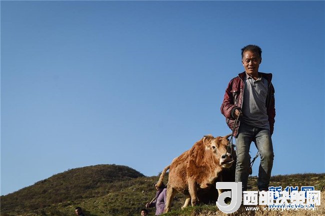 貴州畢節(jié)市七星關區(qū)長春堡鎮(zhèn)埡關村農民張祥印在放牛(2015年11月14日攝)。張祥印是當地的貧困戶,年均純收入只有一千多元。2015年,七星關區(qū)推出精準扶貧套餐,張祥印選擇了養(yǎng)牛,走上脫貧致富之路。新華社記者 歐東衢 攝
