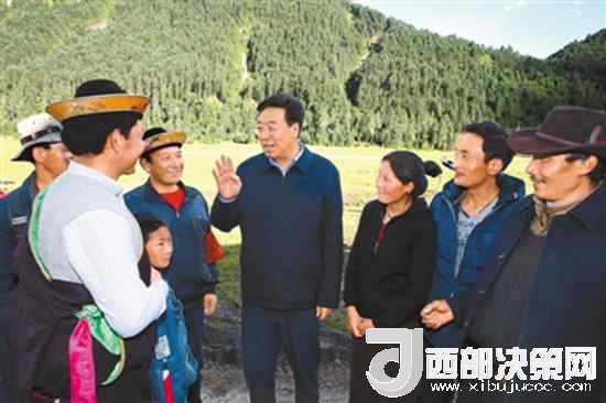 7月24日,自治區(qū)黨委書記吳英杰先后考察了拉林高等級(jí)公路米拉山隧道建設(shè)、工布江達(dá)縣錯(cuò)高鄉(xiāng)基層黨建、錯(cuò)高鄉(xiāng)新措景區(qū)開(kāi)發(fā)和林芝市“雙創(chuàng)”工作情況。這是在錯(cuò)高鄉(xiāng)新措景區(qū),吳英杰與當(dāng)?shù)剞r(nóng)牧民親切交談,實(shí)地考察旅游促增收情況。本報(bào)記者 姚海全 攝