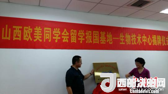 會(huì)前,與會(huì)人員共同見證了“留學(xué)報(bào)國(guó)基地—生物技術(shù)中心揭牌儀式”。山西歐美同學(xué)會(huì) 供圖
