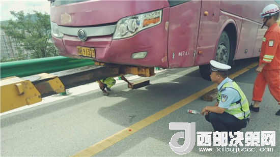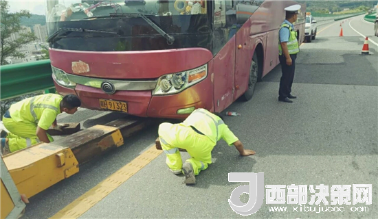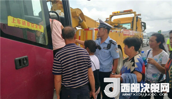 西部決策網(wǎng)-西部大開發(fā)訊(記者帥華鋒 通訊員 馬存福 蘇娟)7月31日上午,甘肅西和縣公安局交警大隊高速中隊執(zhí)勤民警巡邏至十天高速西和段上行線天水方向(西和隧道附近),發(fā)現(xiàn)一輛大客車停靠在路邊,當時高速行駛的車輛川流不息,車輛沒有停放在安全地帶,存在著極大的安全隱患。民警上前立即查看情況,發(fā)現(xiàn)車輛故障,67名乘客被困于高速,乘客大多數(shù)為婦女與兒童,由于天氣炎熱,長時間困于車輛中,情緒焦急不安,存在諸多不安全因素,見此情況,民警立即在故障車輛兩百米外設(shè)置安全提示牌,擺放錐桶,現(xiàn)場指揮過往車輛,提醒車輛減速慢行,做好防護的同時,利用巡邏警車將車上乘客有序轉(zhuǎn)移到一公里外的停車區(qū),積極聯(lián)系高速公路救援中心將故障車輛進行拖移,盡快撤離高速,恢復交通秩序。