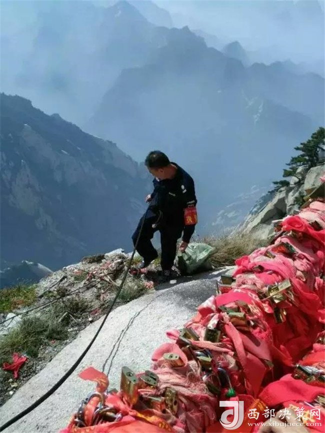 保持環(huán)境衛(wèi)生是一項(xiàng)細(xì)碎繁瑣、費(fèi)時(shí)費(fèi)力的工作。太陽(yáng)曬著,地面烤著,閆芳民日復(fù)一日,默默付出,用勤勞的雙手維護(hù)著華山干凈整潔的環(huán)境。正是許許多多和閆芳民一樣的保潔員,以掃帚為筆,以汗水為墨,書(shū)寫著自己無(wú)怨無(wú)悔的堅(jiān)守,才讓華山如此容光煥發(fā),充滿生機(jī)。