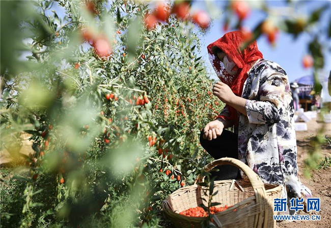 農(nóng)民在寧夏吳忠市同心縣潤(rùn)德莊園枸杞基地采摘枸杞(6月22日攝)。地處西北內(nèi)陸的寧夏,既有高山大漠的雄渾,又有“塞上江南”的溫婉,自然造化之美自古入詩入畫。自治區(qū)成立60年里,尤其是黨的十八大以來,這片熱土上的人民用勤勞和智慧,發(fā)展特色農(nóng)業(yè)、建設(shè)美麗鄉(xiāng)村、樹立文明鄉(xiāng)風(fēng),繪就一幅全新、壯美的鄉(xiāng)村振興新畫卷。新華社記者王鵬攝