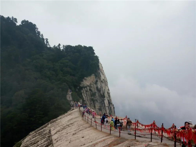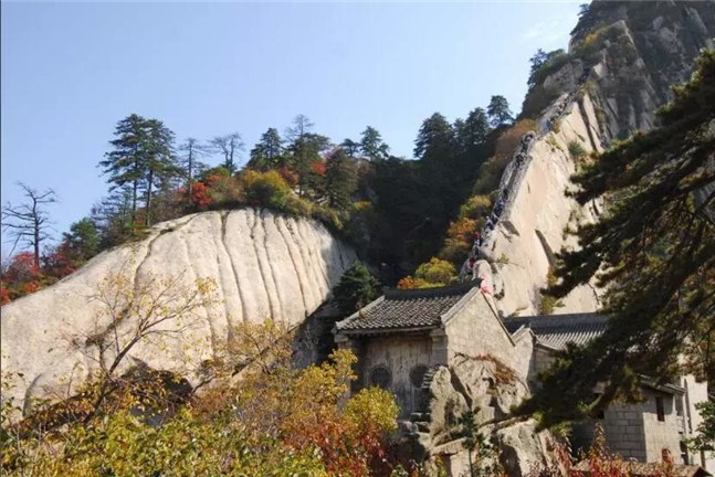 魏晉南北朝時(shí),還沒(méi)有通向華山峰頂?shù)牡缆?。直到唐朝,隨著道教興盛,道徒開(kāi)始居山建觀逐漸在北坡沿溪谷而上開(kāi)鑿了一條險(xiǎn)道,形成了"自古華山一條路"。