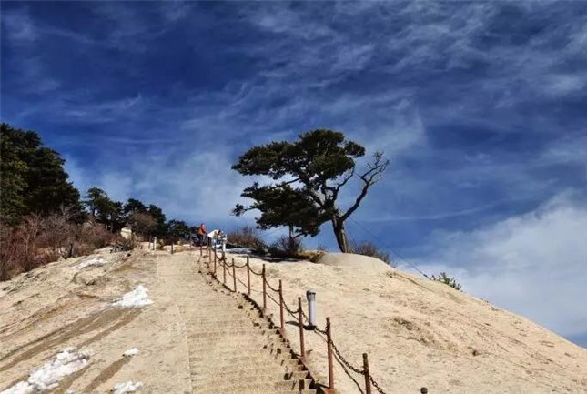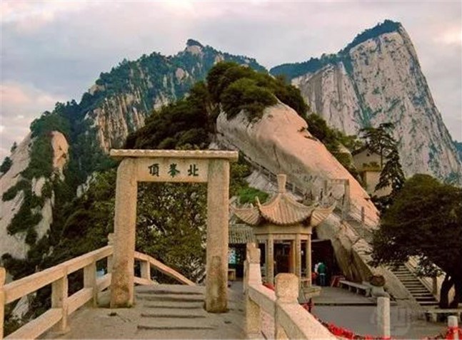北峰海拔1614米,為華山主峰之一,因位置居北得名。北峰四面懸絕,上冠景云,下通地脈,巍然獨(dú)秀,有若云臺(tái),因此又名云臺(tái)峰。唐李白《西岳云臺(tái)歌送丹丘子》詩(shī)曾寫(xiě)到:“三峰卻立如欲摧,翠崖丹谷高掌。白帝金精運(yùn)元?dú)猓魃徎ㄔ谱髋_(tái)。”