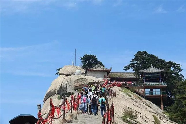 南峰海拔2154.9米,是華山最高主峰,也是五岳最高峰,古人尊稱它是“華山元首”。登上南峰絕頂,頓感天近咫尺,星斗可摘。舉目環(huán)視,但見(jiàn)群山起伏,蒼蒼莽莽,黃河渭水如絲如縷,漠漠平原如帛如綿,盡收眼底,使人真正領(lǐng)略華山高峻雄偉的博大氣勢(shì),享受如臨天界,如履浮云的神奇情趣。