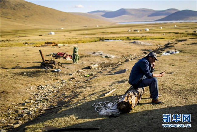 藍(lán)藍(lán)的天上白云飄,白云下面快遞跑——從趕幾十公里路去縣城購物,到在牧場放著羊也能簽收網(wǎng)購快遞,自從新疆青河縣被列入國家級(jí)電子商務(wù)進(jìn)農(nóng)村示范縣以來,牧區(qū)移動(dòng)網(wǎng)絡(luò)全覆蓋、物流打通“最后一公里”,哈薩克族牧民胡賽因·哈力都拉的購物方式已變得越來越便捷。新華社記者江文耀攝