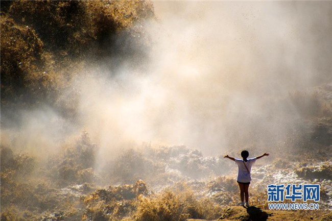 入秋以來,受上游降雨影響,陜西宜川黃河壺口瀑布水量大增,出現(xiàn)“山飛海立”、“旱天鳴雷”的自然景觀,引來眾多游客和攝影愛好者。(趙潔)