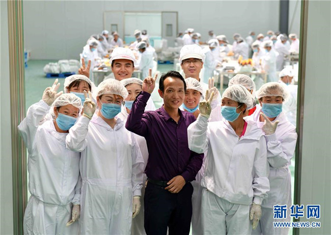 黃玉仁(前排中)在寧夏固原市隆德縣寧夏黃土地農業(yè)食品有限公司與當?shù)貑T工合影(8月29日攝)。來自福建莆田的黃玉仁2017年在隆德縣創(chuàng)辦寧夏黃土地農業(yè)食品有限公司,利用當?shù)伛R鈴薯種植優(yōu)勢,制作馬鈴薯深加工產品,促進當?shù)伛R鈴薯銷售和農民增收。目前公司已建成4條生產線,為當?shù)?0多名百姓解決就業(yè)。 新華社記者郭緒雷攝