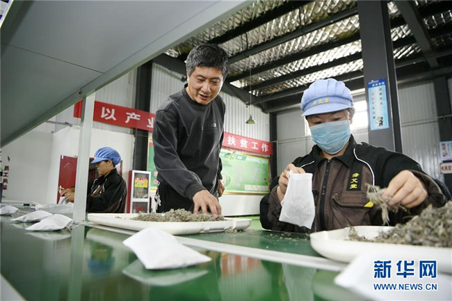 林玉清(中)在寧夏固原市西吉縣寧夏澤艾堂生物科技有限公司向工人講解艾草包裝注意事項(8月30日攝)。來自福建莆田的林玉清2017年3月在西吉縣成立寧夏澤艾堂生物科技有限公司,依托西吉縣優(yōu)質的艾草種植條件,采用“公司+合作社+農戶”的訂單農業(yè)合作模式,與吉強、新營等鄉(xiāng)鎮(zhèn)種植專業(yè)合作社合作建成艾草種植基地11個、推廣種植艾草6000畝,為當?shù)厝罕娒撠氈赂讳伨托侣纷印?新華社記者王鵬攝