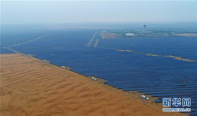 地處寧夏中衛(wèi)市騰格里沙漠邊緣的中衛(wèi)市沙漠光伏產(chǎn)業(yè)園,依托沙漠日照充足、地域廣闊的優(yōu)勢(shì),引進(jìn)太陽(yáng)能光伏組件制造、設(shè)備生產(chǎn)、光伏電站等企業(yè),形成了“硅料+硅片+光伏組件+光伏發(fā)電”的全產(chǎn)業(yè)鏈發(fā)展規(guī)模,打造沙漠里的太陽(yáng)能“硅谷”。記者王鵬攝
