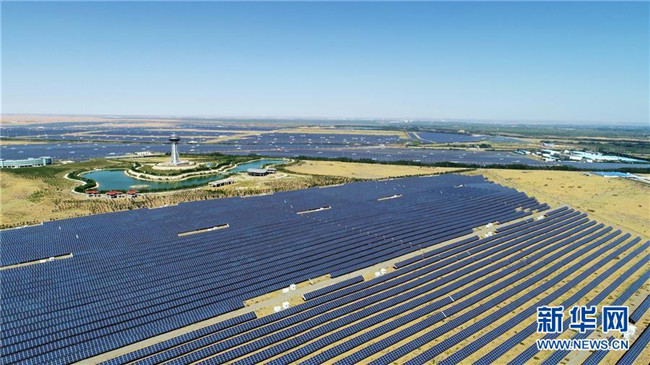 寧夏中衛(wèi)市沙漠光伏產(chǎn)業(yè)園光伏電站(8月31日無(wú)人機(jī)拍攝)。新華社記者王鵬攝