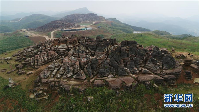 9月16日拍攝的貴州省松桃苗族自治縣盤石鎮(zhèn)紅石林景觀(無人機拍攝)。