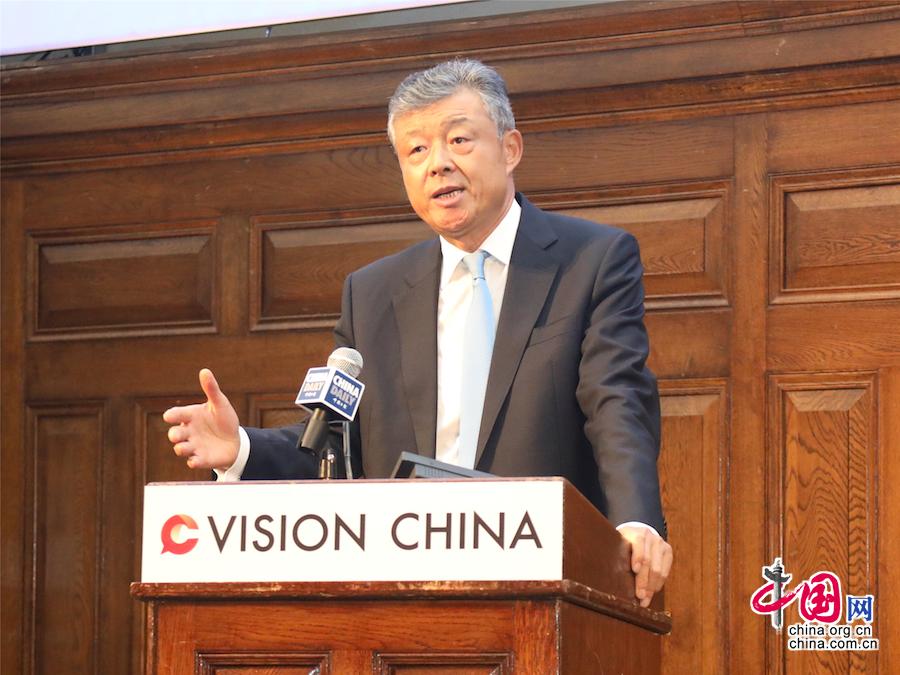9月13日,中國(guó)日?qǐng)?bào)社以“改革開(kāi)放再出發(fā):中國(guó)與世界新愿景”為主題在英國(guó)倫敦喬治街1號(hào)舉辦第五期“新時(shí)代大講堂”。中國(guó)駐英國(guó)大使劉曉明致辭。(主辦方供圖)